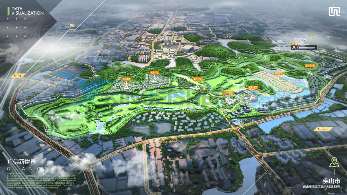 广佛新世界智慧大屏项目,以“四大体系”为发展理念(广佛中心生活区、高球教育养生地、环境生态可持续、健康生活示范区),将大浩湖原有生态资源融入综合项目,营造出了一个多功能、多元化的国际生活社区。